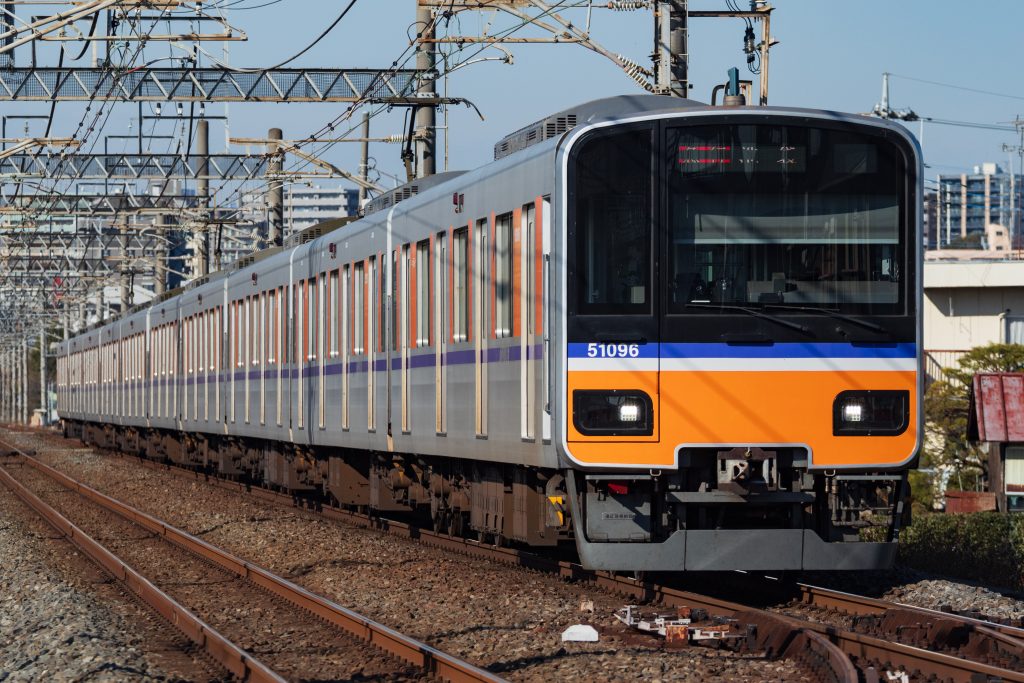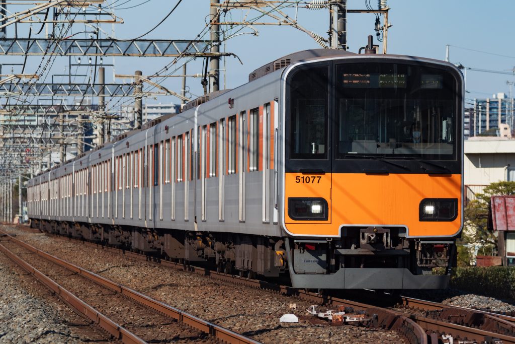 5000系5003F。公式からのアナウンス等は特にないようなのですが、2025年12月1日から前面の帯が除去された状態で運用に入っており、落成した当初の姿に近い状態となっています。