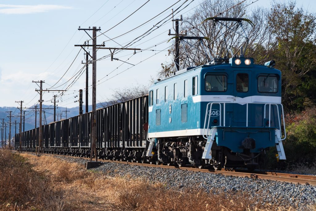 逆光ですが、506。こちら向きの貨物列車は貨物が積載されています。